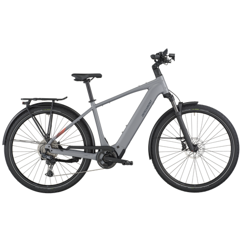 The E-Horizon Sport 10 is a fully equipped e-trekking bike with perfectly integrated components. It includes features such as LED lights with a rear brake light function that increase rider safety in urban environments. The rear carrier is approved for 27 kg and child transportation in combination with a Thule Yepp (Nexxt) 2 maxi seat. The classic derailleur drivetrain for efficient pedaling and shifting is a lightweight and proven concept, and the hydraulic disc brakes offer superior braking power and modulation even in adverse weather conditions.